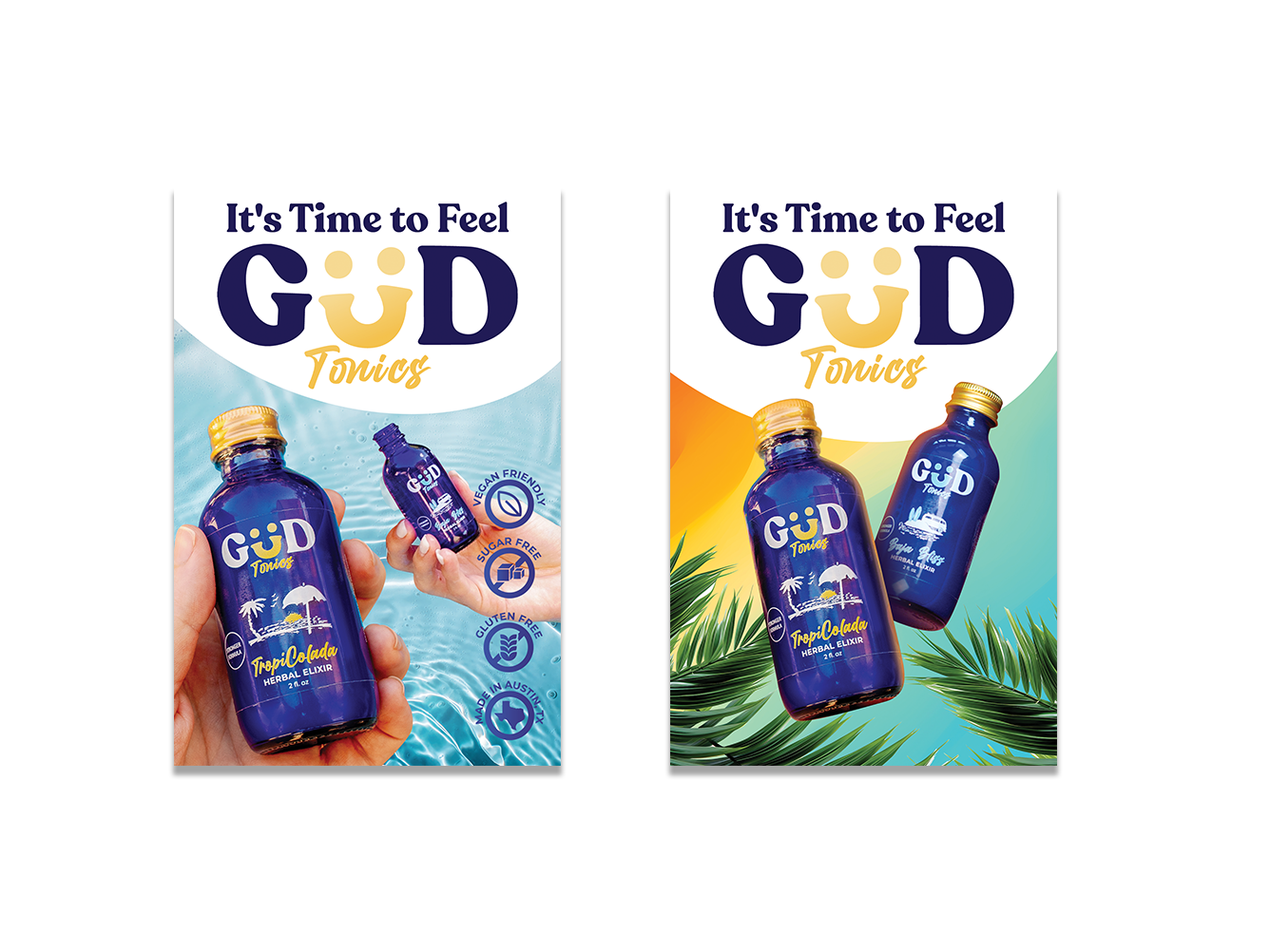 Rebel Brands (at that time Empowered Solutions) have had well-established presence on the market with their kratom-based herbal drinks and powders. The new goal was to launch a fun, playful brand to position Gud Tonics as a go-to when craving a refreshing summer drink.